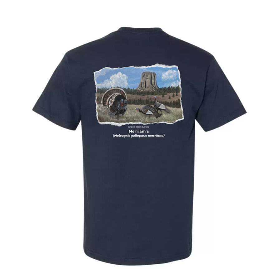 Merriam's at Devils Tower is the very first release of the Grand Slam series of shirts. Turkey Hunting USA has teamed up with wildlife artist Terrie Owens to create a beautiful, screen-printed painting you can wear to show your true passion for turkey hunting.
